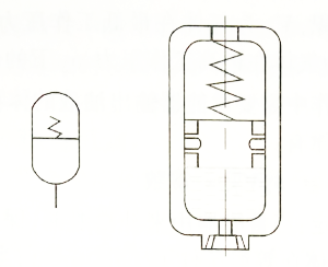 (2)帶彈簧的進油閥使用油液能進入蓄能器,但為防止皮囊自油口被擠出,充氣閥只在蓄能器工作前皮囊充氣時打開,蓄能器工作時則關閉